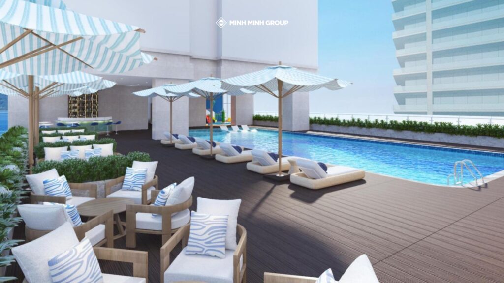 Các tòa tháp đều có 2 tầng hầm, kết nối thông tầng giữa các khối nhà với hồ bơi vô cực, sky bar, khu thư giãn ngoài trời, tạo nên một quần thể nghỉ dưỡng hoàn hảo ngay giữa trung tâm Đà Nẵng.