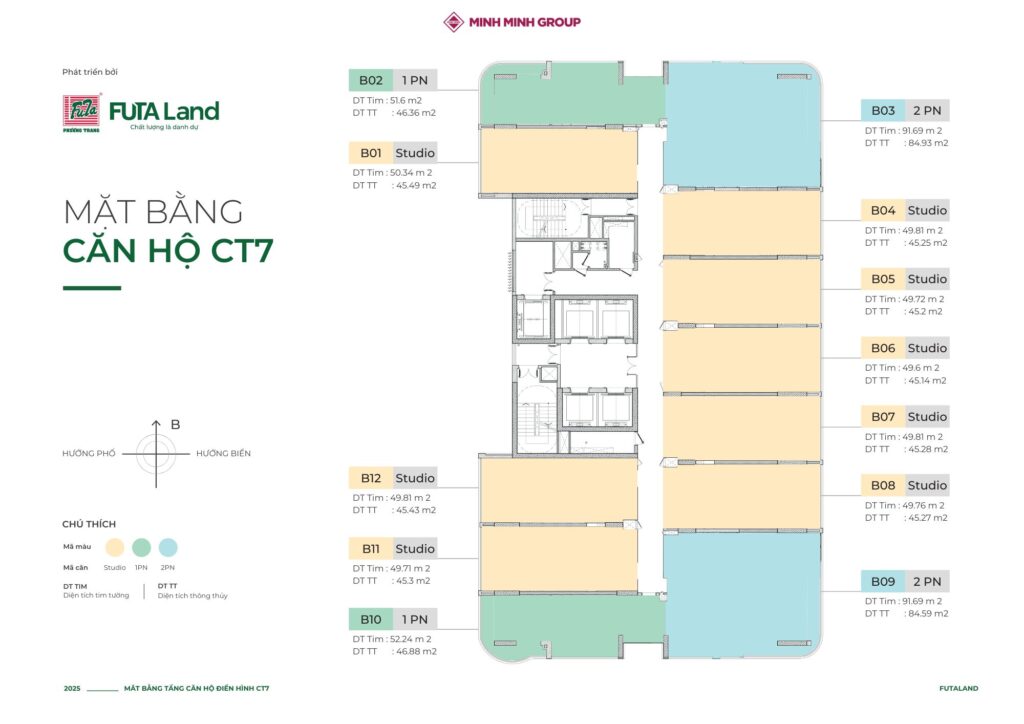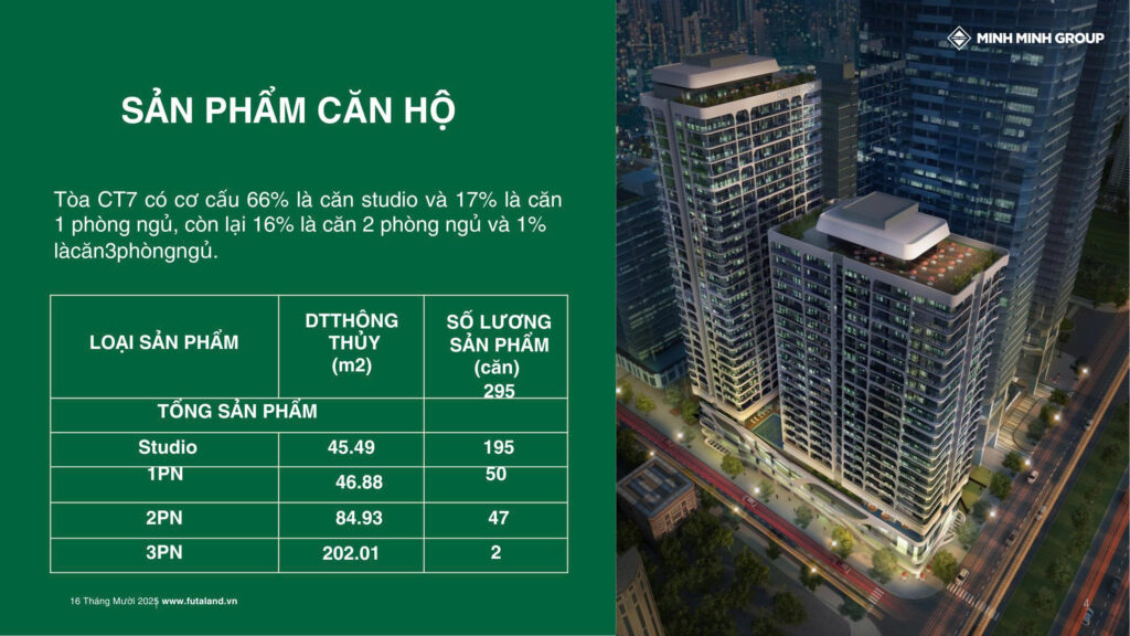 – 195 Căn Studio – Diện tích thông thủy: 45,49m2