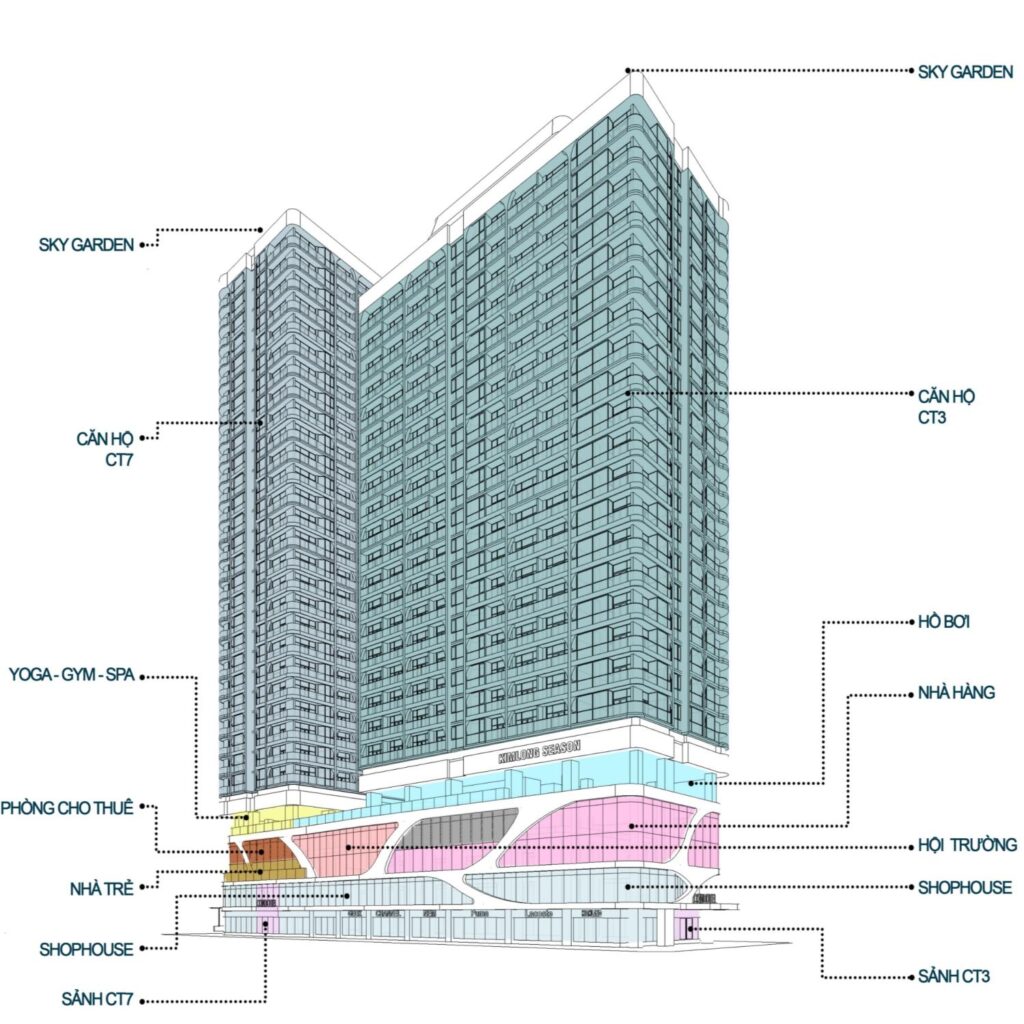 - Gồm 31 tầng với 2 tầng hầm, 4 tầng khối đế, tiện ích ( Tầng 1-4) và Tầng căn hộ (Tầng 5-31)