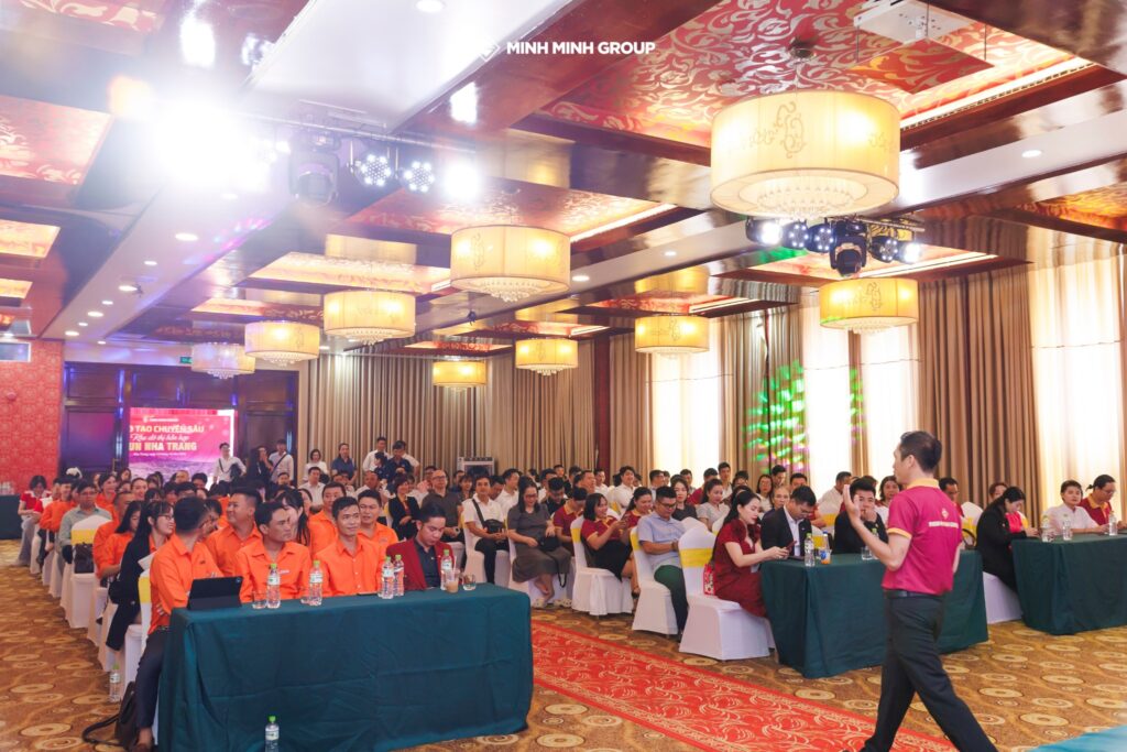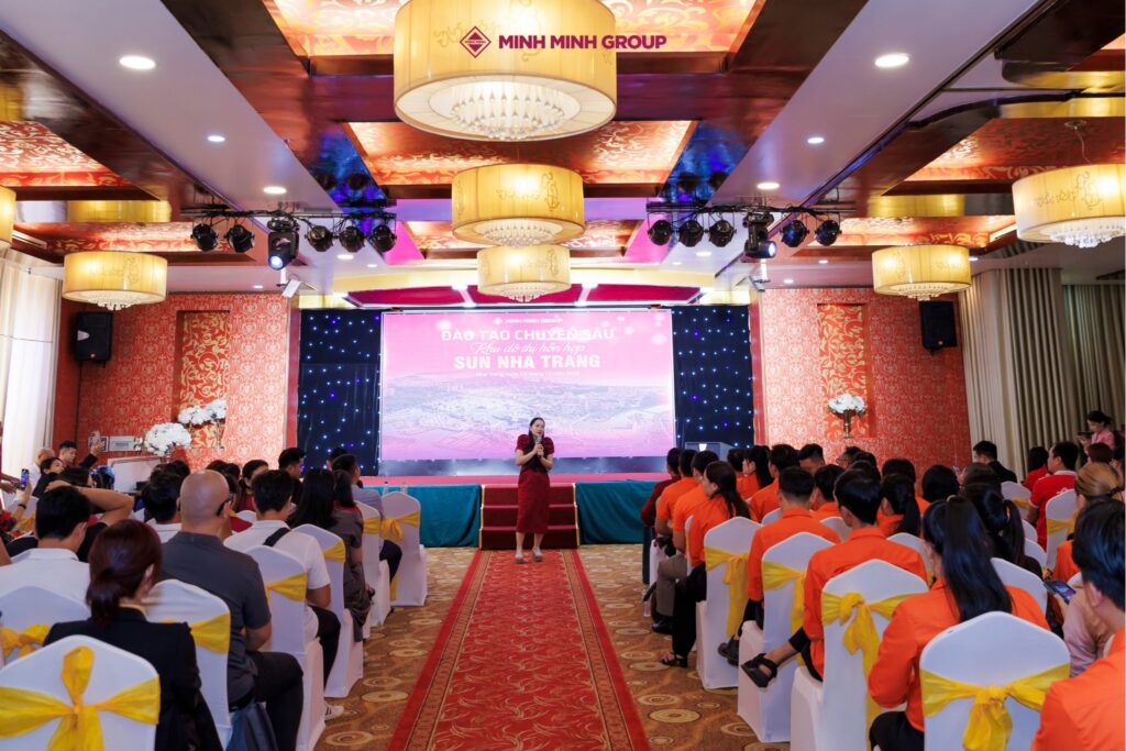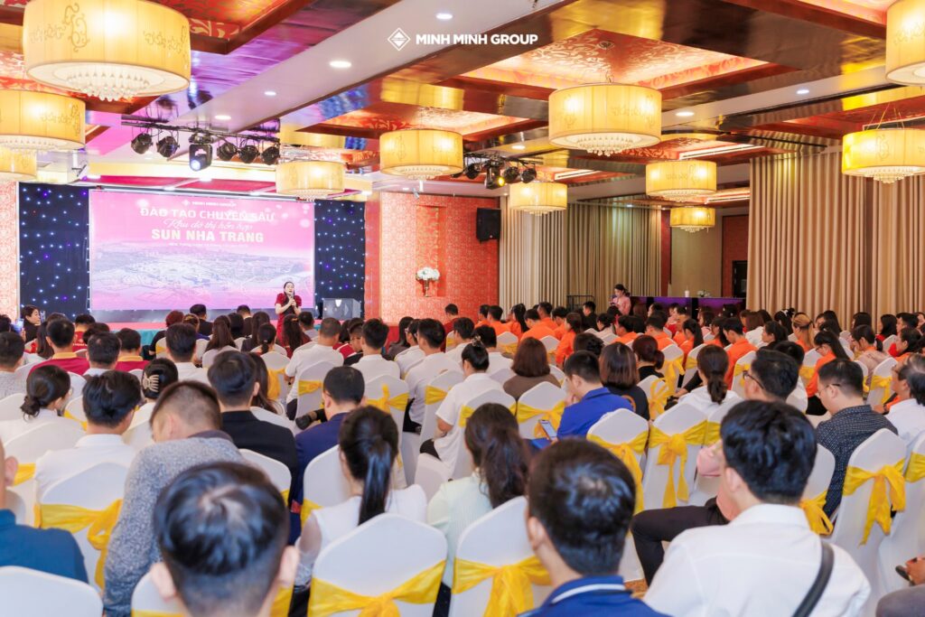 Chương trình thu hút gần 200 chuyên viên kinh doanh và cộng tác viên đến từ Minh Minh Group cùng các sàn liên kết tại Nha Trang. Buổi đào tạo mang đến kiến thức chuyên môn sâu, thông tin sản phẩm chi tiết và định hướng chiến lược bán hàng, giúp đội ngũ nắm vững thông tin và tự tin triển khai hoạt động kinh doanh hiệu quả.