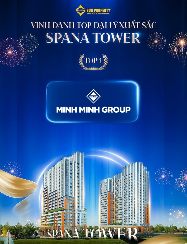 Song song đó, Minh Minh Group tiếp tục khẳng định uy tín và năng lực khi vinh dự đứng Top 1 Đại lý xuất sắc dự án Spana Tower. Thành tích này không chỉ là niềm tự hào mà còn là minh chứng cho sự chuyên nghiệp, tinh thần đoàn kết và chiến lược phát triển bền vững mà Minh Minh Group đã và đang theo đuổi.
