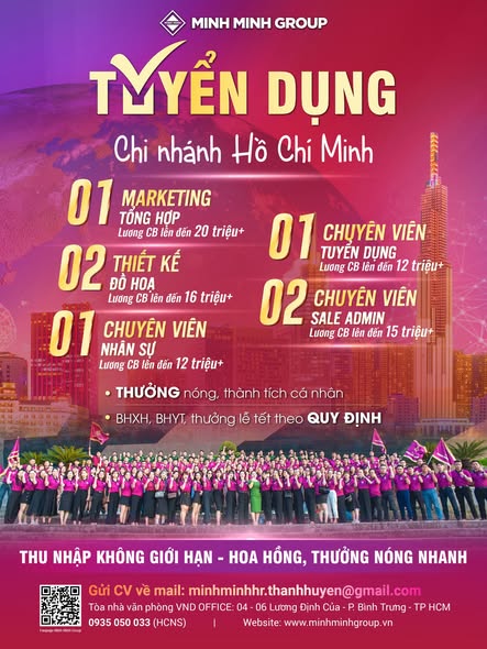 VỊ TRÍ TUYỂN DỤNG TẠI MINH MINH GROUP HỒ CHÍ MINH