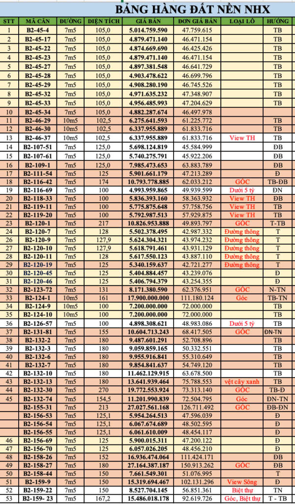 GIÁ BÁN ĐẤT NỀN NAM HÒA XUÂN – KHU ĐẦM SEN CẬP NHẬT NGÀY 27/10/2025